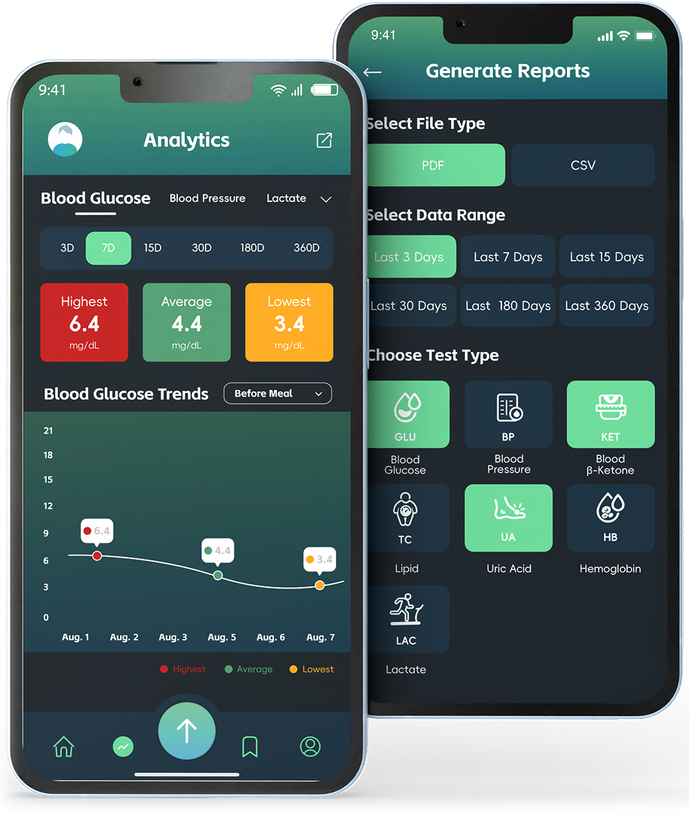 GluMate app instantly display test results, visualizes trends through dynamic charts, and generates professional, easy-to-share reports. By combining automated data tracking, integrated
